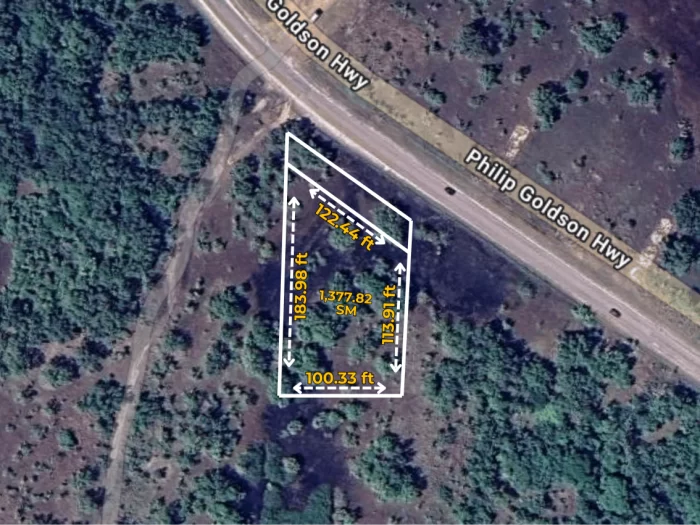 Located directly on the Philip Goldson Highway, the lot features 122.44 ft of highway frontage — making it ideal for both residential and commercial projects. The land extends to 183.98 ft on one side, 113.91 ft on the other, with a shorter back width of 100.33 ft, giving a versatile layout perfect for varied development designs.