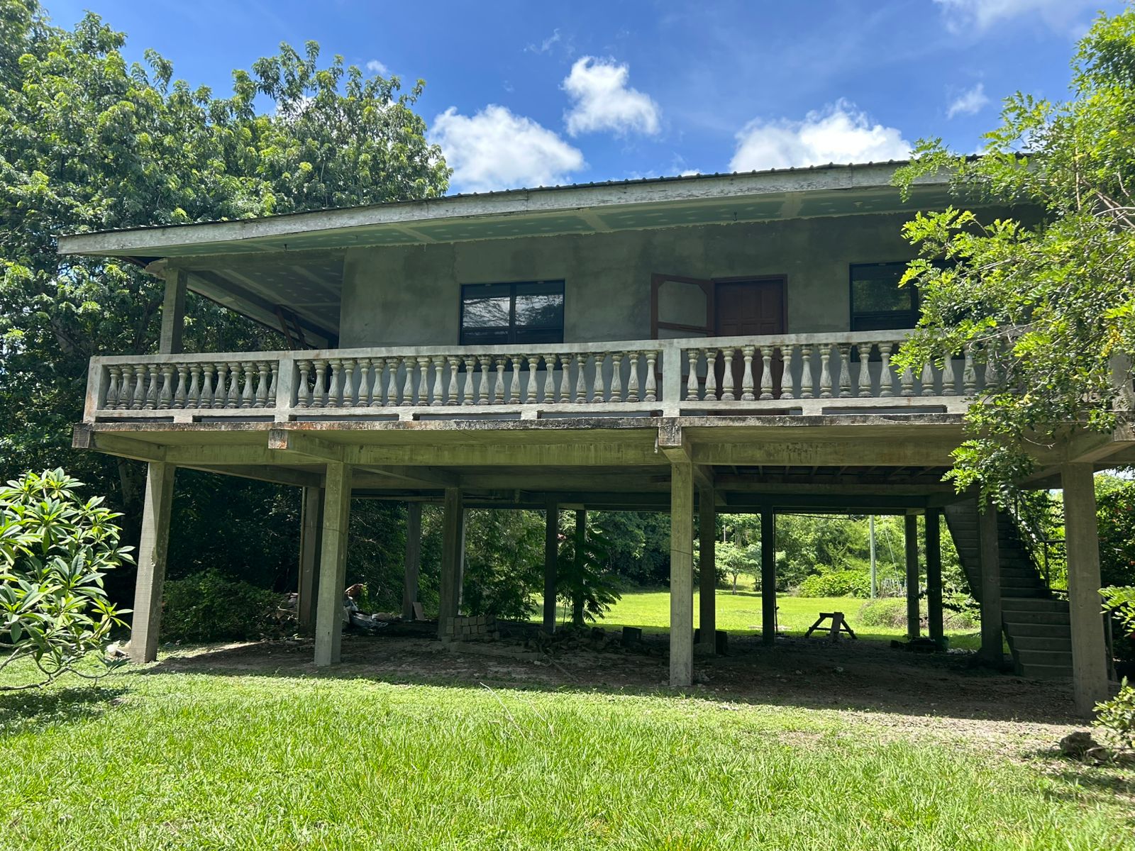2,500 sq ft elevated 3-bedroom house sitting on 1.725 acres of land.