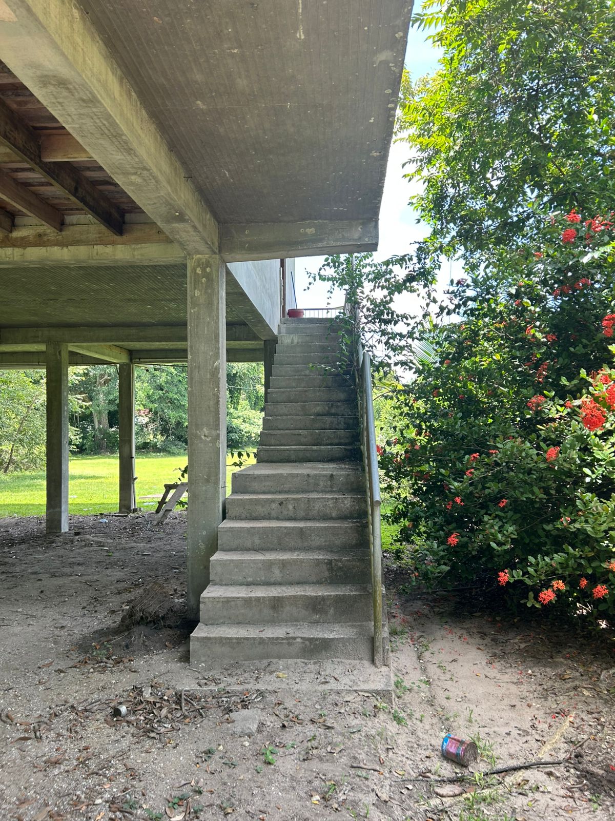 - Structure: Elevated concrete block building, 50 ft x 50 ft (≈2,500 sq ft) with 3 bedrooms